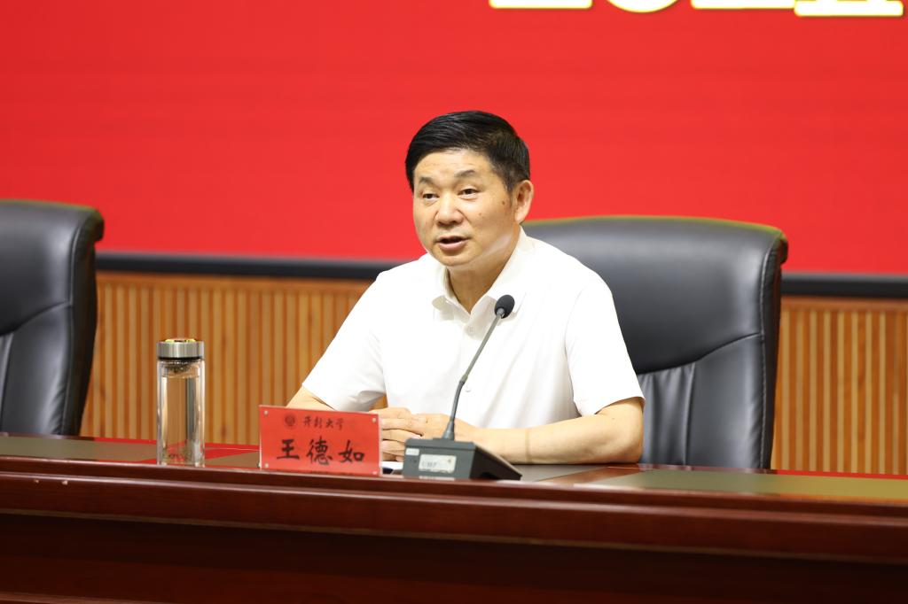王德如强调,我们要进一步凝聚起全校上下牢记嘱托、感恩奋进、狠抓落实的强大合力,推动学习教育走深走实,切实把新风正气转化为学校实实在在的发展成效。一是以殷殷嘱托为遵循,迅速掀起学习习近平总书记在河南考察时重要讲话精神的高潮。要把准“两高四着力”政治方向,激发感恩奋进的精神动力,扛牢服务大局的时代担当。二是以提升办学层次为目标,凝聚推动学校高质量发展的强大合力。全校各单位各部门要坚持学思想、讲协同、抓落实,围绕“七个聚焦”“六大标志性工程”持续发力,确保逐条逐项落到实处、见到实效。三是以校园文化为牵引,大幅提升学校治理的科学化水平。加强学校文化引领,强化学校制度集成,构筑学术科研新样态,抓好校风学风,打造书香文明安全和谐校园,为师生提供兼具“文化厚度、文明温度、安全力度、服务精度”的优质校园环境。四是以锲而不舍的韧劲为动力,确保中央八项规定精神学查改取得实质性成效。要强化动真碰硬,一体推进学查改同查同治,深学细悟强根基,靶向施治破顽疾,学干融合促发展。要强化责任链条,一体推进学查改有质量有力度有成效,强化头雁效应引领示范,聚焦“务实高效”优化工作流程,践行“真抓实干”提升服务质量,坚持“精准施策”增强工作实效,推动“协同联动”形成工作合力,确保学有质量,查有力度,改有成效。五是以安全稳定为首要政治任务,坚决打赢学校防汛抗旱救灾保卫战。安全无小事。要坚持人民至上、生命至上,坚决贯彻落实习近平总书记关于防汛抗旱重要指示精神,坚决守住防汛抗旱安全底线。全校上下要把思想和行动统一到总书记重要要求上来,按照省委部署,落实市委安排,立足于防大汛、抗大旱、救大灾,扎实做好防汛抗旱、抢险救灾、校园安全等各项工作,全力确保校园安全稳定大局。