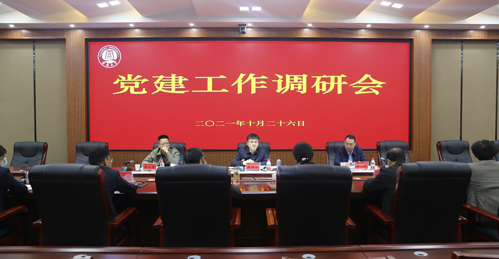 本站讯 10月26日下午,开封市委组织部副部长、市委人才办主任陈培鸿、市委组织部四级调研员许涛、市委组织部干部四科科长赵永芳莅临我校开展党建工作调研。校党委书记陈灿、校长宋晓炜及全体党委委员参加调研,调研会由陈灿主持。