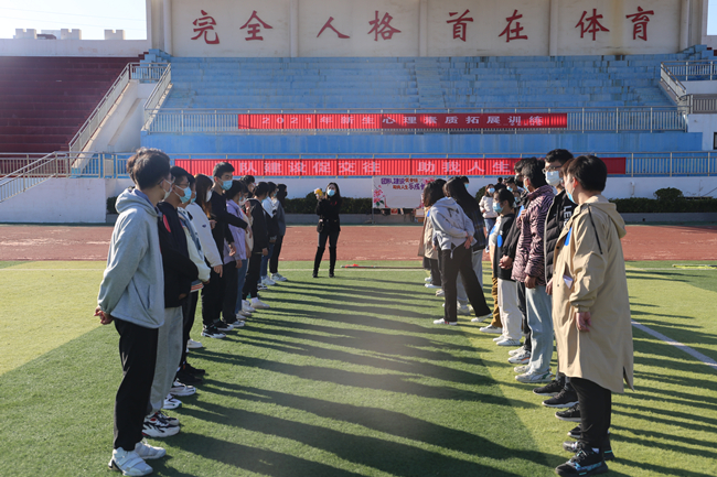 本站讯 11月10日下午,我校心理健康教育中心在体育场围绕“团队建设促交往,助我人生乐成长”主题开展了“2021级新生心理素质拓展训练”团建活动。校党委书记陈灿,校党委委员、工会主席成芳到场指导,活动由学生工作部副部长梁波主持。