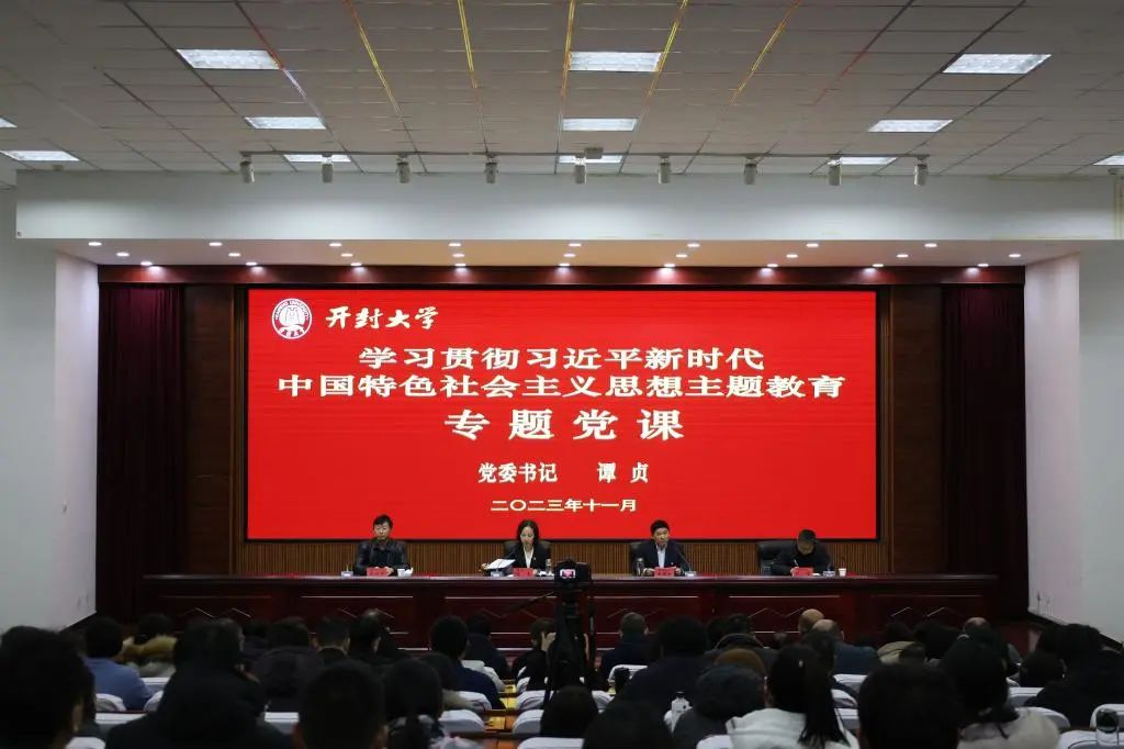 谭贞指出,要深刻领悟中国式现代化的中国特色,不断增强教育强国建设中的使命担当。坚持为党育人、为国育才的初心使命,抓住“中国式现代化”建设带来的新机遇,建好高质量的高等职业教育,引导学生走技能成才、技能报国之路,为服务国家战略和经济社会发展培养更多高素质技能人才;深刻理解中国式现代化的核心要义,加强人才培养在强国建设中的使命担当。要坚持人民至上,站稳价值立场。坚持自信自立,坚守精神特质。坚持守正创新,弘扬时代品格。坚持问题导向,汇聚源头活水。坚持系统观念,掌握科学方法。坚持胸怀天下,提升发展境界;深刻理解中国式现代化的实践要求,服务地方经济发展展现开大使命担当。围绕开封市“16136”总体工作思路,学校将以提升高层次技术技能型人才培养质量为目标,从学校发展、专业建设、师资培养、人才培育等方面深化校企合作、产教融合,将bat365在线官方网站高质量发展融入开封市“六项战略”的实施和“六大片区”的建设中。