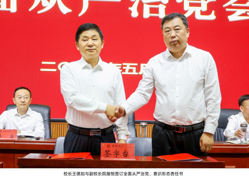 校纪委书记石超亭安排部署了2025年纪检监察工作。校党委副书记张合要求,要提高站位,强化责任,优化作风,狠抓落实。会上,王德如与校领导班子成员现场签订了全面从严治党、意识形态责任书,各院、部门负责人向校长递交了年度目标任务责任书。